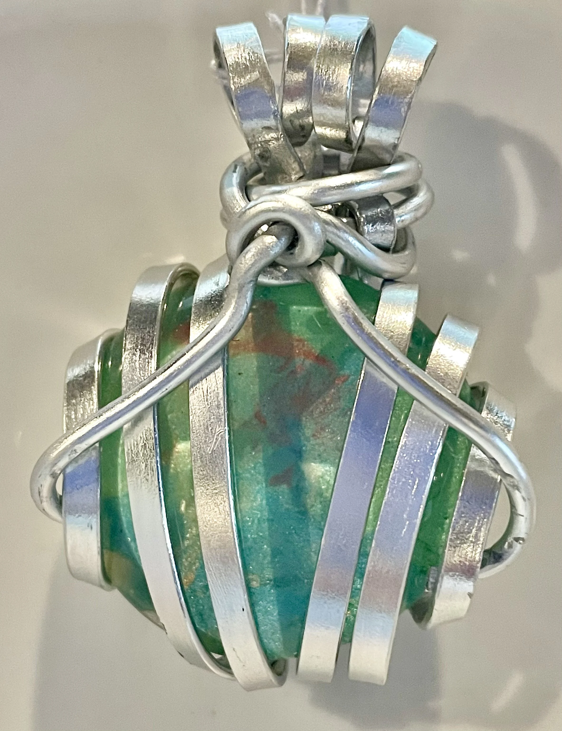 W#55: Crystal painted glass stone with aluminum craft wire. Approximate stone dimensions: 3 cm (about 1.18 in) in diameter. Includes a black 17'' layered multi-strand voile organza ribbon necklace cord or an 18” white waxed necklace string rope cord (2mm dia) with chain clasp.